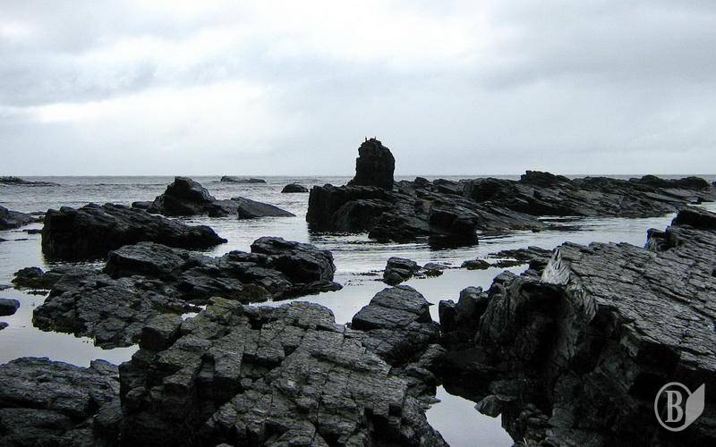 Тихий океан лизал подошвы моих кросовок. На черных камнях сидели стаями такие же черные птицы бакланы, вытянув свои длинные шеи. Со стороны Половинной долины меня догнал дождевой фронт: низкие тучи мгновенно нависли над побережьем, быстро потемнело, пошёл холодный дождь. Переждал его под скалистым навесом и двинулся дальше.