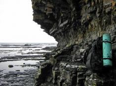 Оставался единственный выход – карабкаться на скалы. Но это оказалось ой как сложно! Горная порода была далеко не крепкой, камни вырывались из-под ног и летели вниз, рукам почти ни за что было уцепиться. Когда достиг высоты приблизительно 6 метров над водой, понял, что когда буду лезть дальше вверх, то рискую сорваться со скалы вместе с камнями, за которые буду цепляться. Вниз пути были отрезаны (вода продолжала прибывать), оставаться на месте тоже не мог, потому что отлив должен был начаться через 12 часов.