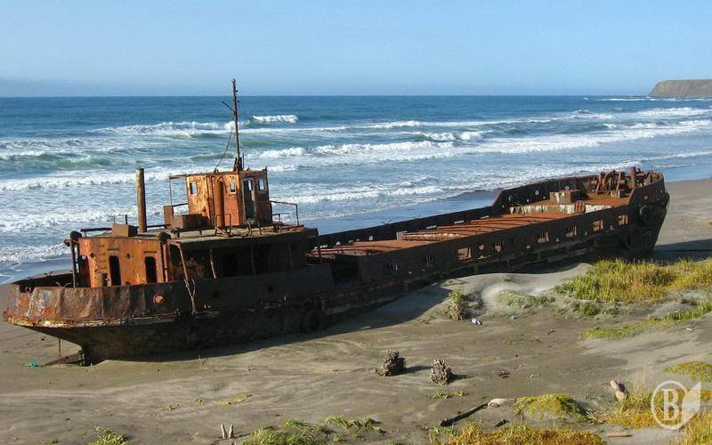 Километрах в четырех-пять от Никольского увидел старую заржавленную баржу, которая крепко засела в песок в 13-15 метрах от берега. Лет с двенадцать тому назад во время сильного шторма ее сорвало с якоря и выбросило на берег. Груз угля, который был в трюмах, выгрузили, а вот судно так и осталось на „вечной стоянке”. Теперь его используют разве что в своих играх в „войнушку” местная детвора.