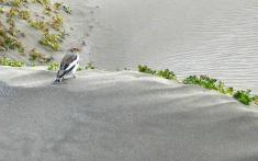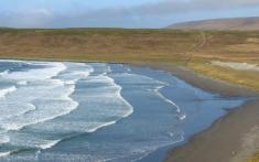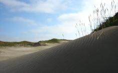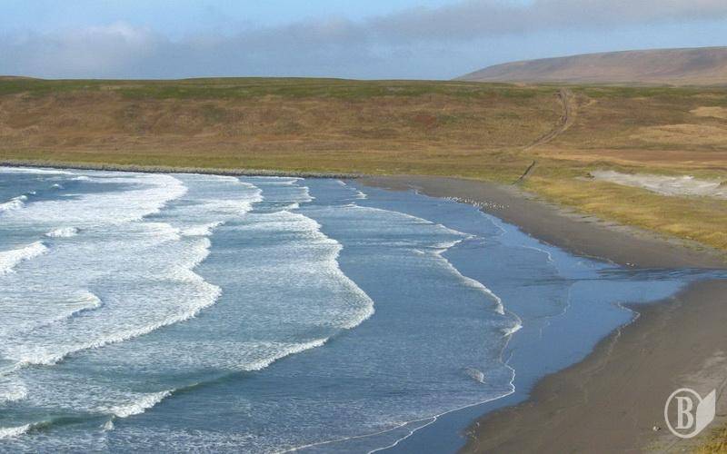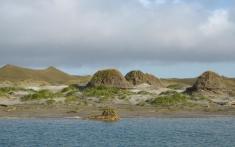 В направлении северного запада шла грунтовая автомобильная дорога (точнее, колея) – это путь к лежбищам морских котиков. Но я поспешил вернуться в Никольское, потому что из океана на остров надвигалась серая стена дождя. На обратном пути свернул с лайды и прошелся по своеобразной командорской пустыне – полосе песчаных дюн, которые протянулась на 1,5-2 км и 100-200 м в ширину. Как и увиденные за пять месяцев до этого прибалтийские дюны, дюны острова Беринга медленно обрастают густой и высокой травой.