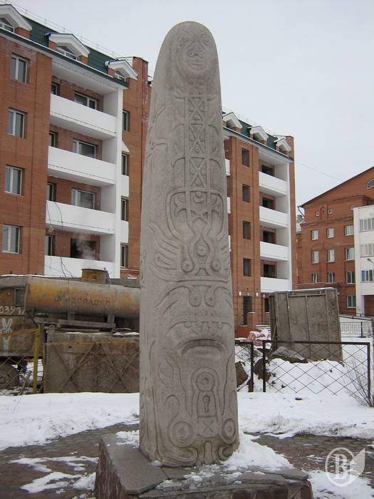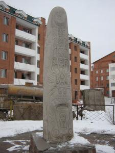 В Абакане четыре православных храма и я осмотрел их все: кроме кафедрального Спасо-Преображенского собора и храма Святителей Московских еще есть Градо-Абаканский храм Константина и Елены и самый старый в городе Свято-Никольский собор. Очень хотел посетить краеведческий музей, особенно хотел увидеть экспозицию каменных глыб и стелл из древних чаатасов, но уже третий месяц музей находился на реставрации, работали лишь две локальных выставки. Правда, часть экспозиции – целая аллея стелл и плит с древними рисунками – выставленная на улице, перед входом в музей. А в музейном магазине-киоске приобрел за 700 рублей хакасский шаманский бубен, о чем еще в Чернигове меня просили друзья из Центра культурных традиций „Этнос”.