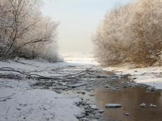 Чем дальше продвигался на юг (а точнее сказать, к географическому центру Азии), тем заметнее становилась зима. Слой снега вдоль дороги был не меньше метра, мороз сковал все реки и ручьи, ветви почерневших деревьев покрывала причудливая изморозь. Начались перевалы и горные „серпантины”. Хребты Западного Саяна, по которым проходит граница между Красноярским краем и Тивой, выступали вычурными саблевидными пиками. На вершине Буйбинского перевала водитель остановил машину.