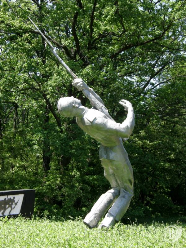 По дорозі з Чернігова в Короп першою зупинкою на маршруті буде старовинне с.Оболоння. Перед самим селом вас зустрічатиме, на перший погляд, доволі звичний для багатьох сіл і містечок Чернігівщини монумент, присвячений подіям, що відбувались тут під час Великої Вітчизняної війни. Але це тільки на перший погляд. Пам’ятник Героям Оболонського плацдарму є насправді унікальним, і не кого не залишає байдужим. Замість типової прямої фігури суворого воїна з автоматом, ви бачите молодого, худощавого солдатика-новобранця з гвинтівкою, при чому у тий самий момент, коли в юнака тільки що поцілила ворожа куля… Вже падаючи, скидаючи руки угору, він останній раз дивиться на небо і ніби запитує: «За що, Господи?». Ось так воно і було – з гвинтівками проти танків…