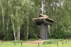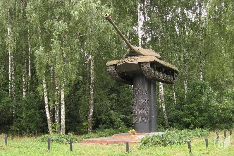 Після сіл Южне і Верескуни в’їжджаємо до Тростянця. Позаду – 225 км, 13-та година другого дня подорожі. Мандрівників тут зустрічає танк ИС-3 вагою 46 тонн, встановлений… на колону!