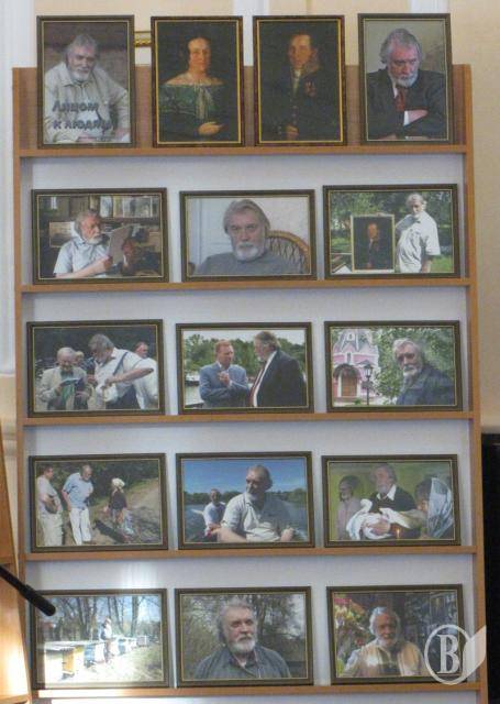 Звертаю увагу на стенд із книгами письменника. Нормально. Іще один стенд із фотографіями Сбітнєва. Його наші фотографи одразу охрестили – іконостас. Там знімки письменника з портретами знатних предків, з Кучмою та інших ситуаціях.