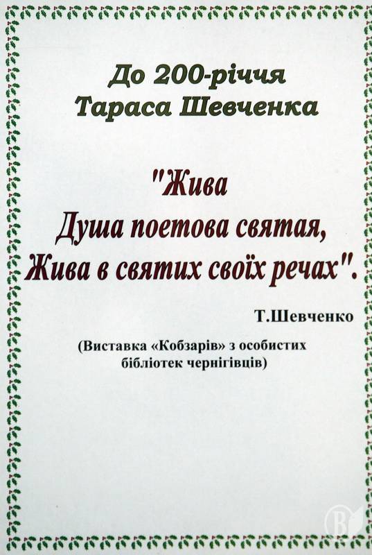 У тому числі з особистих бібліотек відомих чернігівських письменників, педагогів, журналістів та мистецтвознавців під назвою «Жива душа поетова святая, жива в святих своїх речах». Усього експонується 29 видань, найстарше з яких датоване 1876 роком (з фондів нашого музею).