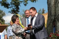 Заместитель председателя – руководитель аппарата областной государственной администрации Сергей Журман вручил Государственную награду «Заслуженный работник культуры Украины» директору литературно-мемориального музея имени А.П. Довженко Любови Наконечной.