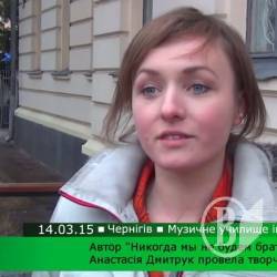 Автор"Никогда мы не будем братьями"Анастасия Дмитрук 14 марта провела творческий вечер в музыкальном училище имени Л. Ревуцкого в Чернигове.
