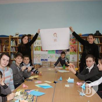 Изготовления японского журавля – символа мира и надежды в креативной студии «Кирпоносаstreet» при Центральной городской библиотеке им. А. П. Довженко г. Чернигов стало Первым звеном цепочки в «Кругу добра».