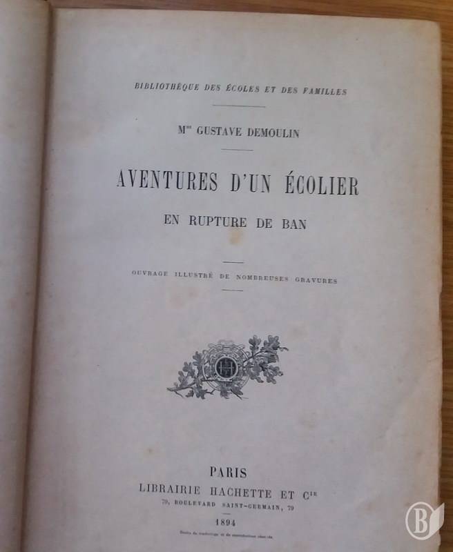 Обидва видання на французькій мові, надруковані понад сто років тому. Одна з написом «Aventures d’un ecolier en rupture de ban» датована 1894 роком, друга – «Les compagnons de la marjolaine» - 1907.