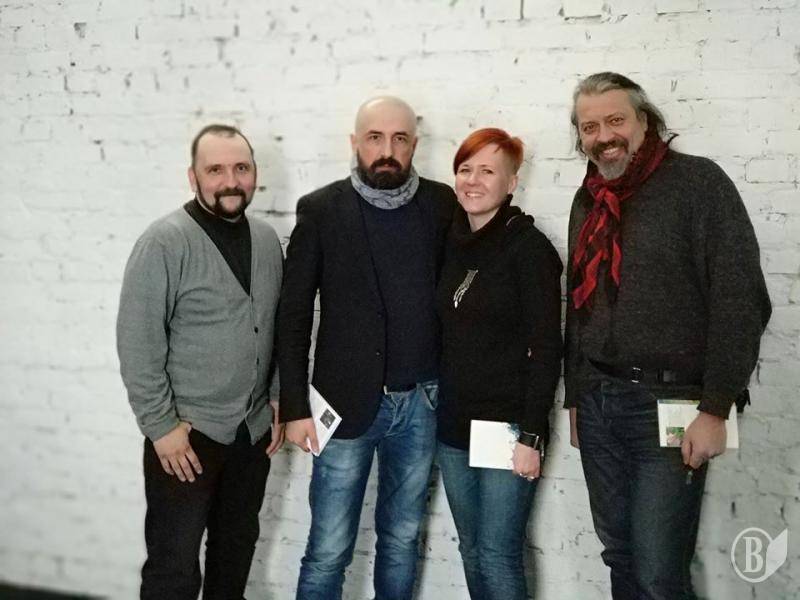 «Вечеря на Свободі» з учасниками фестивалю «Мандрівний віршень», що триває у Чернігові 9-10 березня: Сергій Пантюк, засновник фестивалю та Олена Задорожна і Олег Короташ.