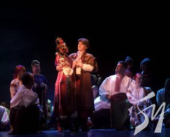 Неповторна магія української ночі, створена на сцені завдяки її високохудожньому оформленню, майстерному світловому і звуковому супроводу, заполонила глядачів, налаштовуючи їх на сприйняття гоголівського бачення українського сільського побуту, народних звичаїв та переказів, дивовижного поєднання містичного і реального. На сцені буяло розмаїття «Майської ночі» – розливчасті солов’їні трелі перепліталися з мелодійними українськими піснями та сольним співом артистів Лариси Кравчук (Галя) і Владислава Лещенка (Левко), Ольги Коновал (Панночка), Валентина Коріня (Голова), Альберта Лукашова (Писар). Веселе пожвавлення та сплески сміху в залі викликали кумедні сценки за участю добряче захмелілого дядька Каленика (засл. арт. України Олександр Куковєров), спритної вдовиці Горпини (арт. Наталія Гнатенко), діловитого винокура Явтуха (арт. Микола Лемешко), запопадливо-боязких соцьких (арт. Дмитро Літашов і Микола Мироненко).