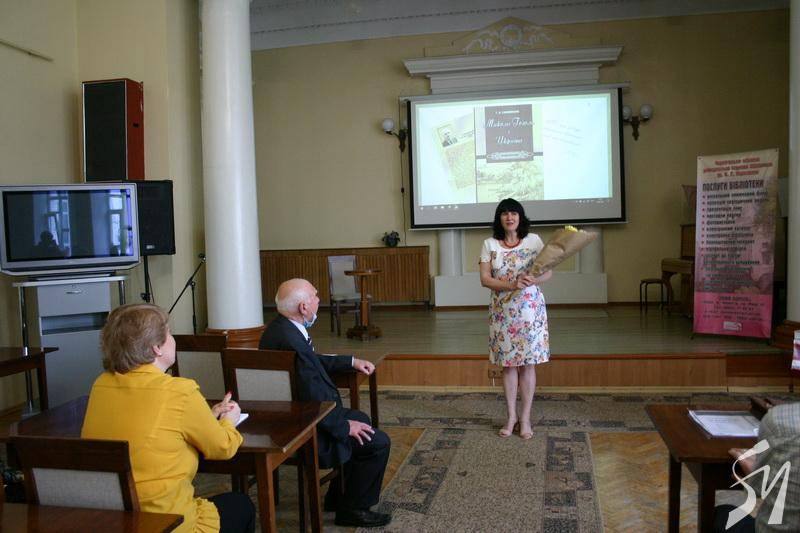 У читальній залі була розгорнута книжково-ілюстративна виставка "Гоголіана Григорія Самойленка", яку прокоментувала модератор заходу, завідувачка відділу краєзнавства бібліотеки Ірина Каганова.