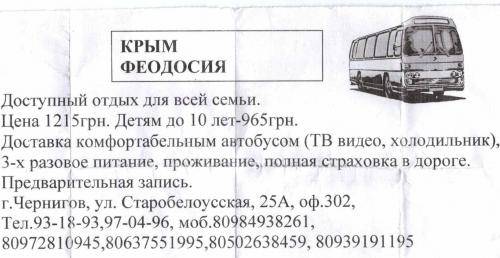 Відпочинок у смт. Приморське (10 км від Феодосії) тривав 10 днів. Оплата за проживання – 30 грн. на день, Харчування – півсотні. Подорож на старому "Ікарусі" без кондиціонера тривала у спеку майже 20 годин.
