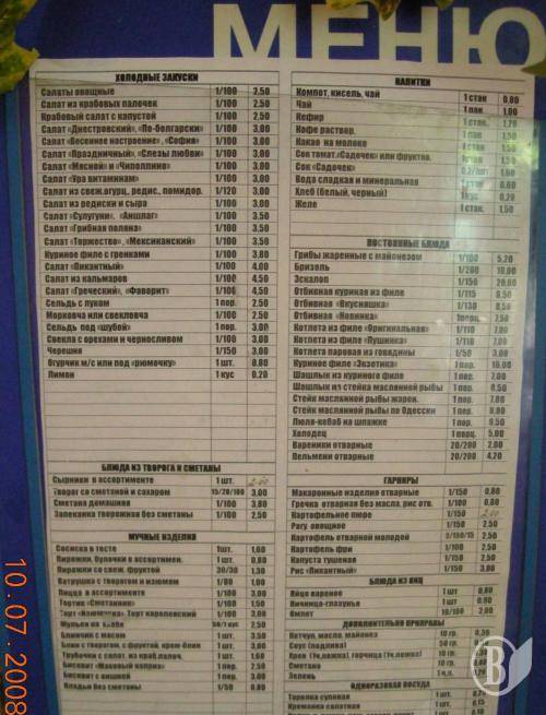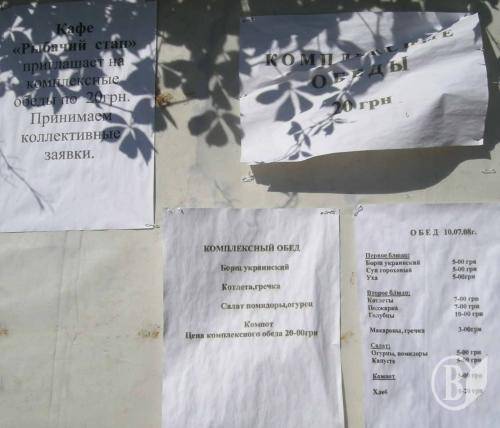 По всьому селищу більшість їдалень і кафе пропонували комплексні обіди за 20 грн, сніданки й вечері по 10 грн. При чому порції були побільше й можна обирати меню.