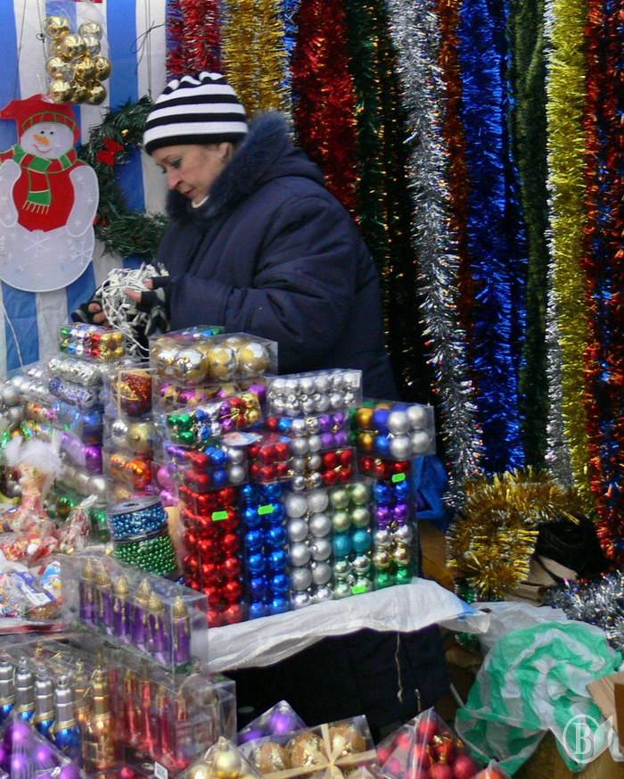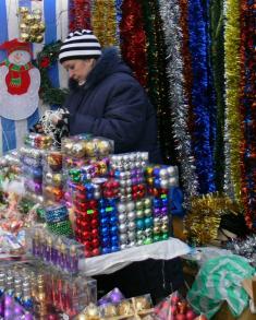 Останній штрих – прикрасити ялинку дощиком. Коштує одна така гірлянда від двох до 15 гривень, в залежності від того, наскільки вона товста і пухнаста.