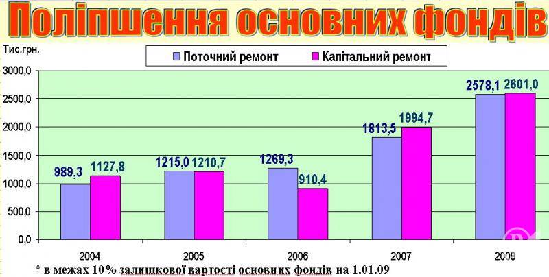 Потреба в коштах для заміни застарілого обладнання та зношених мереж складає понад 2,2 мільярди гривень. Таких коштів немає, але підприємство, починаючи з 2004 року, щорічно залучає суттєві інвестиції, які у 2008 році досягли рекордного рівня - понад 24 млн. грн.