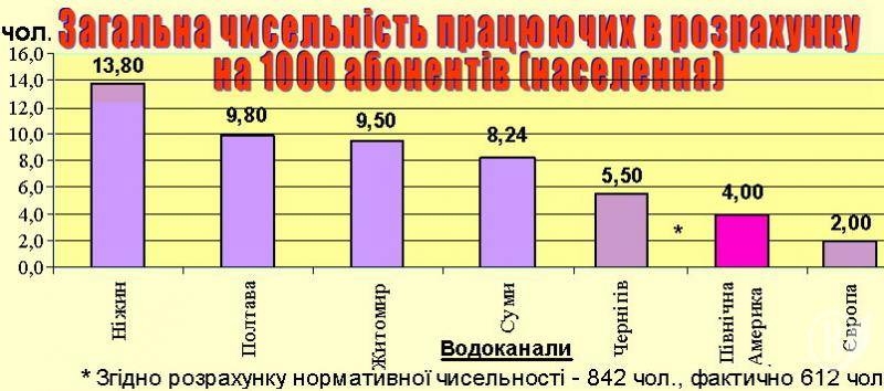 Втрати води склали 25,5% при нормі 26,8%, що менше, ніж у попередні п'ять років. За рівнем втрат «Чернігіводоканал» має кращі показники, ніж в Італії та Іспанії (27%) і майже на рівні Великобританії та Франції -25%.