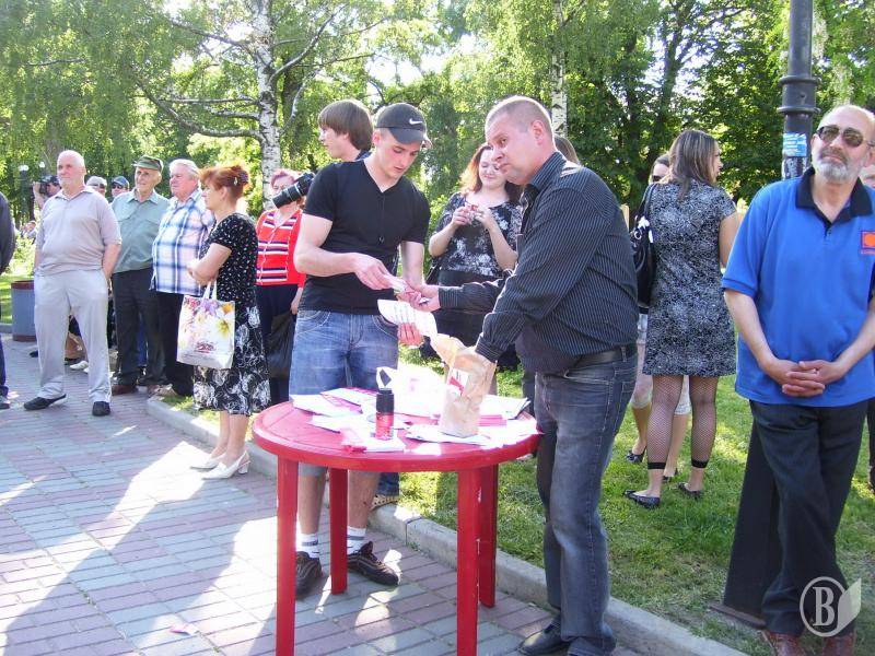 Організатор акції та активіст «НАС» Олександр Пабат заявив, що політики не мають права виставляти свої кандидатури на виборах. Що Ющенко, Тимошенко, Яценюк та інші політики і бізнесмени «повинні сидіти за ґратами». Адже це вони нас грабують і не залишають вибору.