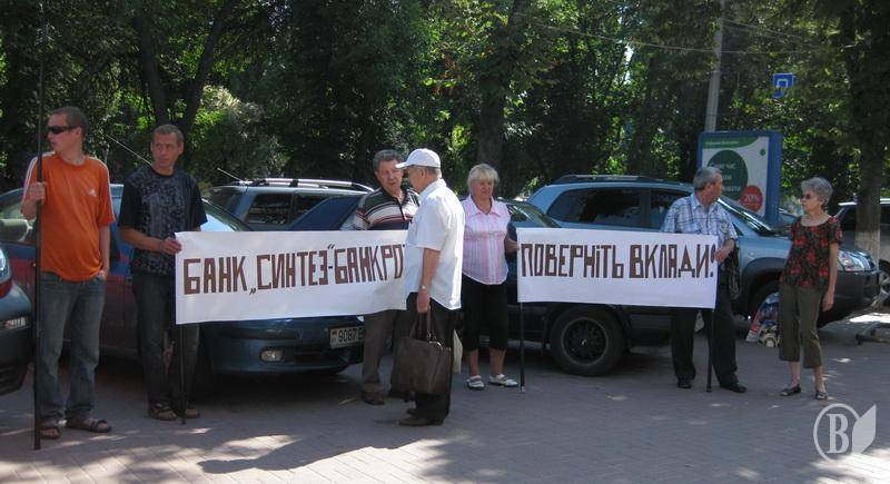 Сьогодні об 11 годині біля відділення філії Банку «Синтез» було влаштовано пікет «Народною Самообороною». Це вже «n» банк, який відмовляється повертати людям гроші.