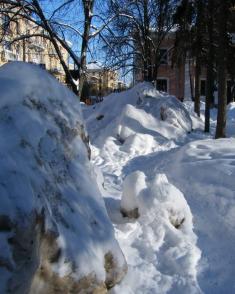 Именно об этом ярко свидетельствует новейший способ уборки, реализованный местными коммунальщиками. На некоторых улицах в центре города снег с проезжей части... сдвинут на тротуары.