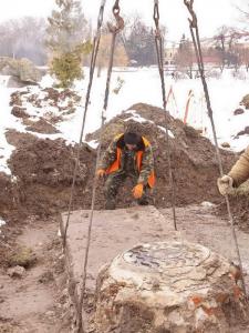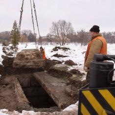Операцию, которая напоминала открытие саркофага фараона, выполняла вчера бригада КП «Черниговводоканал» вблизи Дворца торжественных событий.