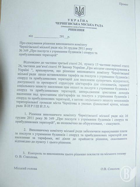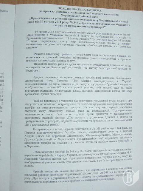 На фото - проект рішення міської ради, підготовлений фракцією КПУ: