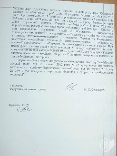24.01.2012 Чернігів призупинив підвищення квартплати на 40-63% з 1 лютого