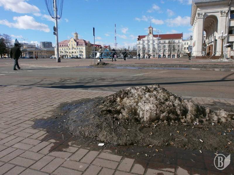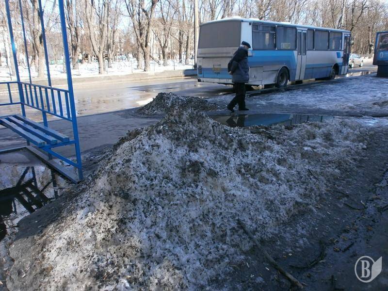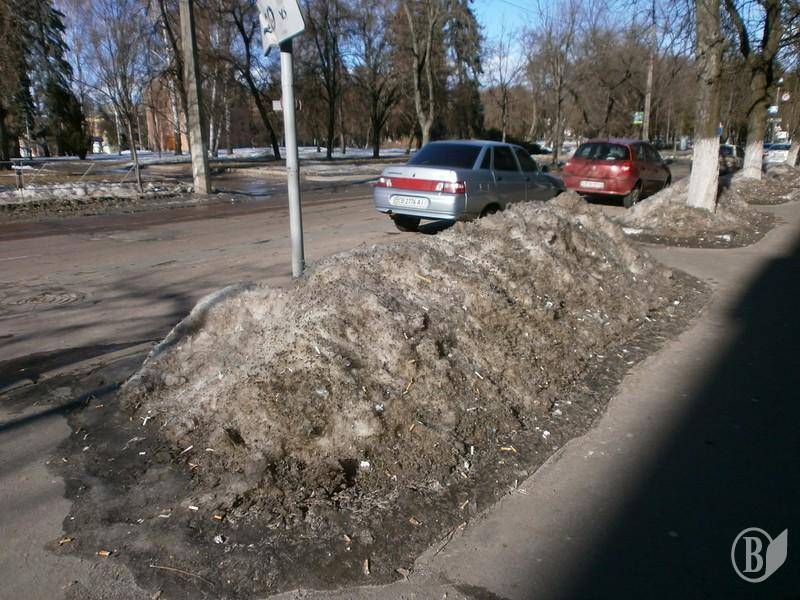 І як згадка про нетривалу зиму всюди чорніють неприбрані кучугури спресованого снігу, які увібрали у себе всю ту отруту, що продукує місто.