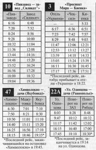Розклад руху автобусів для пільгових категорій населення на час дачного сезону (24 квітня - 20 вересня, по вівторках і четвергах) У таблицях наведено час відправлення автобуса з зупинок