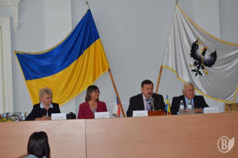 Володимир Купріяненко детально розповів про організацію системи освіти м. Чернігова, позакласної та спортивно-масової роботи у дитячих садках та школах міста. Він підкреслив, що чернігівських та чеських освітян пов’язують не тільки багаторічні дружні стосунки, а й професійне співробітництво. Гостей також зацікавили заходи енергоефективної модернізації шкіл міста.