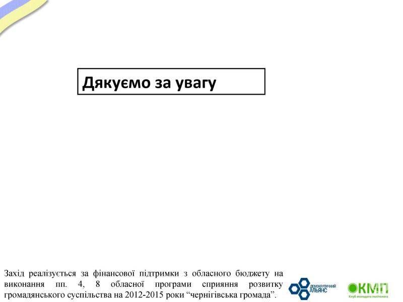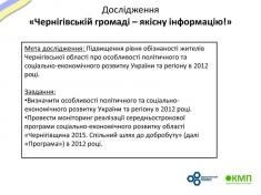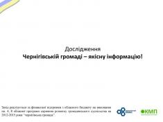 Моніторингове дослідження реалізується громадською ініціативою Клуб молодого політолога та Чернігівським обласним осередком всеукраїнської молодіжної громадської організації «Демократичний альянс» в рамках проекту «Чернігівській громаді – якісну інформацію!» за фінансової підтримки з обласного бюджету на виконання пп. 4, 8 обласної Програми сприяння розвитку громадянського суспільства на 2012-2015 роки “Чернігівська громада”.