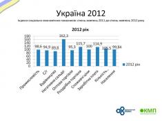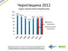 Індекс виробництва промислової продукції в 2012 році вперше за останні 4 роки показує позитивну динаміку. На листопад 2012 року він складав 102,7 % аналогічного минулорічного показника. П’ятирічка обіцяла нам майже таку ж цифру – 102,8 %.