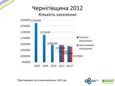 Демографічна ситуація в Чернігівській області продовжує показувати негативну динаміку. Станом на жовтень 2012 року в області проживало 1 084 400 осіб, що на 0.83 % менше, ніж в 2011. Проте п’ятирічка прогнозувала значно гірші показники. Очевидно, що демографічна ситуація має тенденцію до зменшення негативної динаміки.