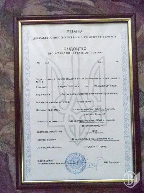 Пресс-тур начался с экскурсии по гостинице «Украина» в сопровождении директора Татьяны Николаевны Петриченко. «В конце прошлого года мы прошли сертификацию и подтвердили высокий уровень предоставления гостиничных услуг соответственно категории 3*. Мы рады принимать гостей Чернигова с максимальным комфортом, - сообщила она журналистам. - Наша гостиница предлагает 90 номеров разных категорий с бесплатным Wi-fi доступом к Интернету, стоянку для автомобилей, сертифицированное и качественное круглосуточное ресторанное обслуживание, есть номер для молодых с уникальным романтичным дизайном и номер для людей с ограниченными возможностями. Для проведения деловых встреч, переговоров и конференций предлагаем конференц-сервис. Постоянно создаем тематические праздничные акции и вместе со специалистами по туризму предлагаем интересные экскурсионные туры выходного дня».