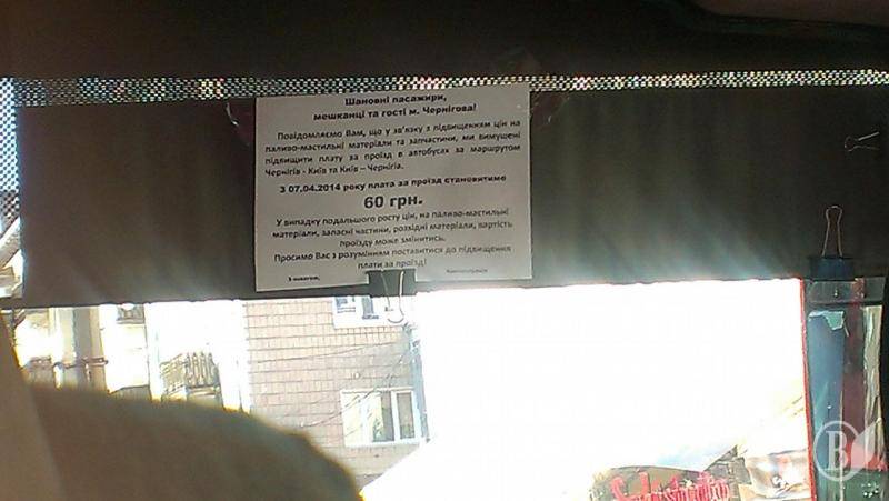 Как вспоминает "Высокий Вал" "с 1-го мая 2013 одновременно, без предупреждения населения все перевозчики повысили стоимость проезда по маршруту Чернигов-Киев на 25% до уровня 50 грн. Предыдущий тариф в 40 грн. Был установлен в ноябре 2010 года."