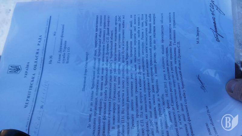 Виктор Лазарь продемонстрировал два письма по адресу председателя государственной фискальной службы Игоря Билоуса от 4 и 5 февраля, которые направили и.о. председателя ОГА Сергей Журман и председатель облсовета Николай Зверев. Верхушка области просила уволить господина Дусяка, чтобы не дестабилизировать ситуацию.