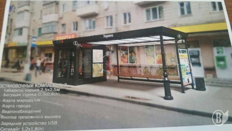По бокам комплекса будут размещенные сити-лайты, карта города и маршрутов, сзади – прозрачное стекло. На каждой такой остановке будет установлено по 2 видеокамеры, кнопка вызова полиции и USB-порты для подзарядки мобильных.