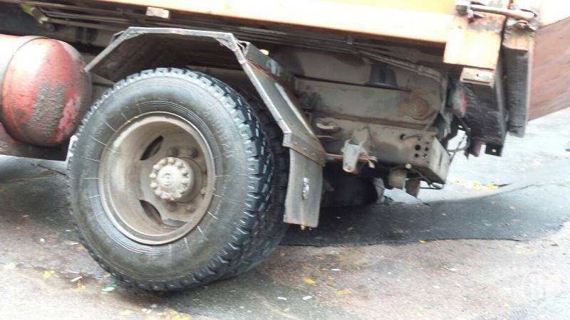 В Чернигове мусоровоз провалился задним (сдвоенным) колесом на недавно заасфальтированном участке проезда.