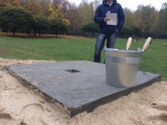 Капсулу у фундамент майбутнього будинку, де отримають квартири учасники антитерористичної операції закладено сьогодні, 12 жовтня, у Чернігові, поблизу парку «Березовий гай».