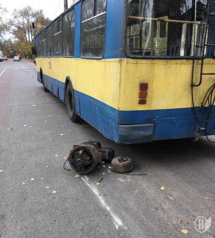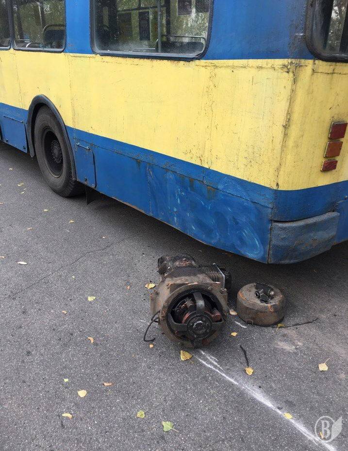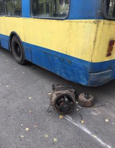 Троллейбус на улице в Чернигове на ходу «потерял» компрессор.