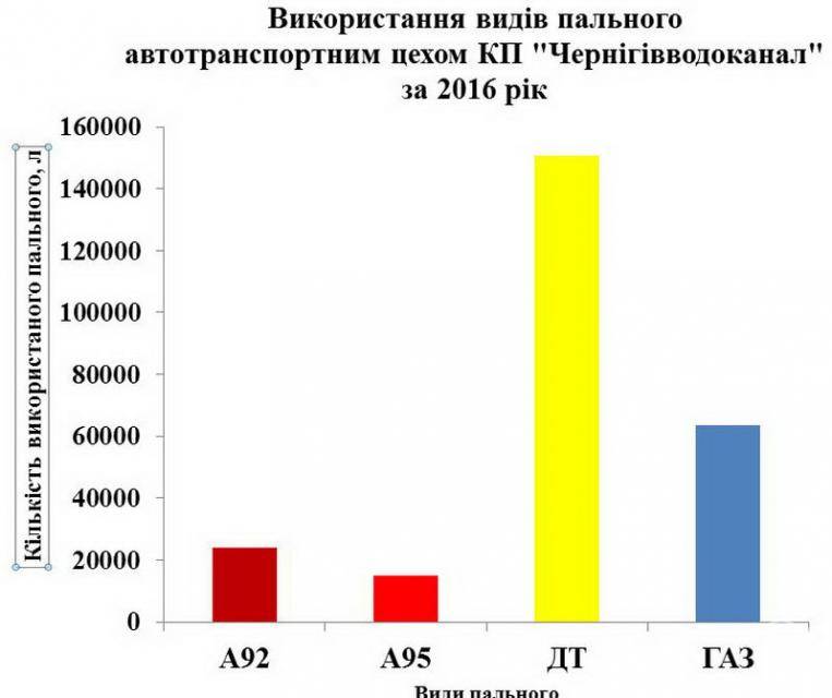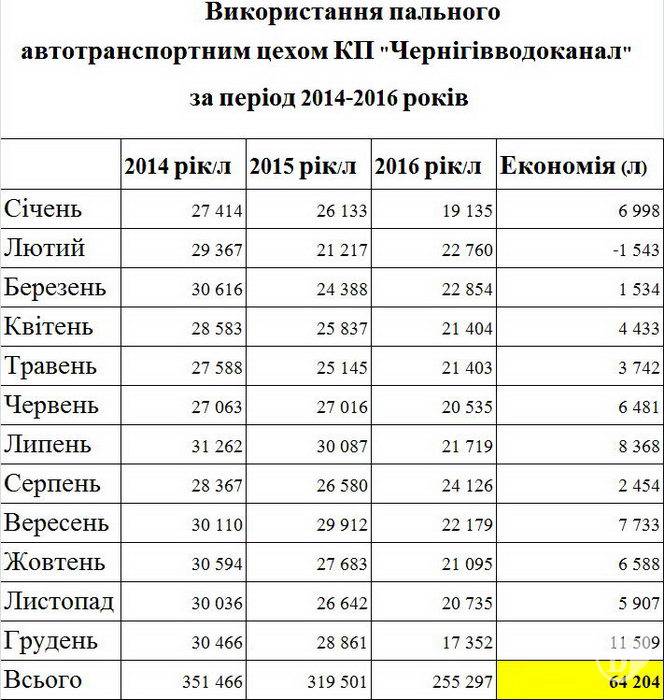 Тільки за підсумками автотранспортного цеху КП «Чернігівводоканал», за умови виконання запланованих виробничих завдань, сумарне споживання усіх видів пального скоротилося на 64 тисячі літрів.