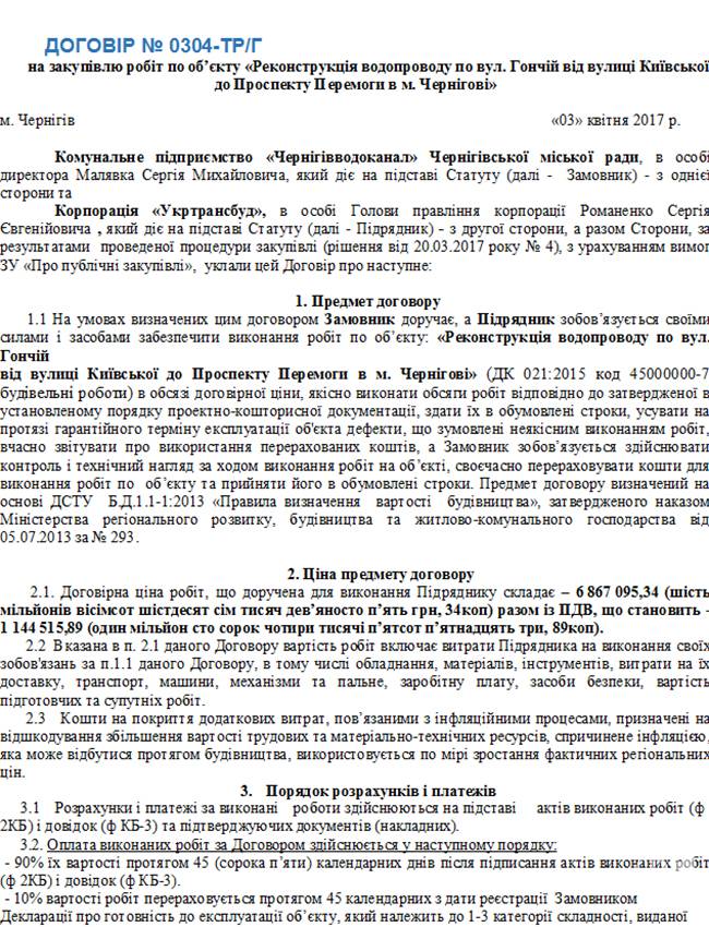 Заміна сталевих труб на пластикові буде проводитись корпорацією «Укртрансбуд» на підставі договору, укладеного з КП «Чернігівводоканал» цього тижня.