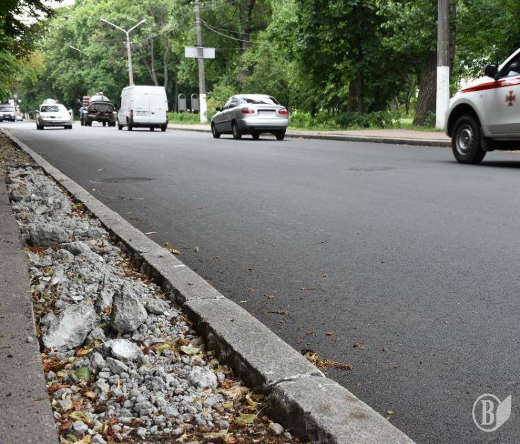 «На самій проїжджій частині цієї вулиці роботи ми закінчили. Тепла і переважно суха погода сприяла виконанню в строк. Зараз робимо з’їзди – на Гончу, Музейну, у двори. Я думаю, що за сьогодні-завтра їх завершимо теж. І потім приступимо до асфальтування тротуарів і велодоріжки. Далі залишиться тільки нанести розмітку, – пояснив Харчук. – Проїжджа частина тут ремонтувалася наступним чином. Спочатку - вирівнювання бортового каменю. Потім робили фрезерування, щоби вирівняти поверхню – там, де це було треба по відмітках. Потім поклали вирівнюючий шар асфальту. Проґрунтували його. І на цю основу по всій довжині дорогизаклали геотекстильний матеріал – армуючу сітку. Зверху – 6 см асфальтобетонної суміші з більшим щебенем, яка дає дорожньому покриттю щільність і жорсткість. І над ним – шар дрібнозернистого асфальту. Тобто разом вийшов армований асфальтобетон, який має служити довго».