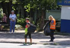 Вийшла з маршрутки №11 біля магазину «Союз», що на вулиці Доценка. Помітила, як через дорогу жінки в яскравих жилетах збирали кимось розкинуте сміття – обгортки, якісь папірці. Цих «кимось» було багато, бо з іншого боку вулиці працювали і чоловіки. Теж прибирали.