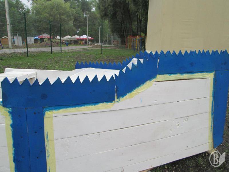 На дитячому майданчику, чи то пак газоні на міському пляжі «Золотий берег» в Чернігові встановлено імпровізований човен для дитячих забавок.