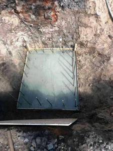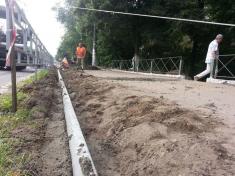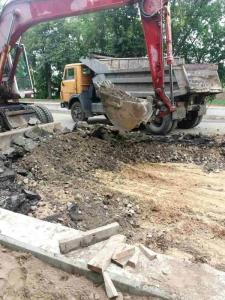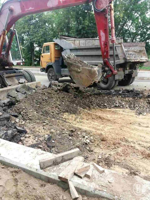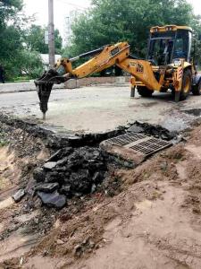 Після того комунальники демонтували пошкоджену основу дорожнього покриття, облаштували колодязі з бетонуванням дна та армуванням стін, проклали траншї під труби зливової каналізації. Зроблений монтаж двох пластикових труб, бетонування колодязів і решіток та зворотна засипка комунікацій.