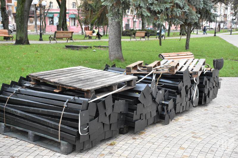 Реконструкція скверу імені Богдана Хмельницького у Чернігові перебуває на фінальному етапі. Це паркан.