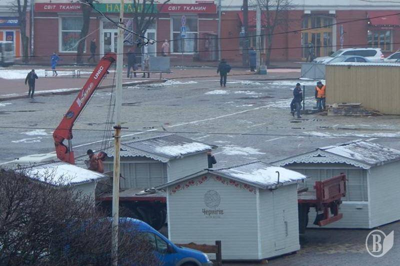 Свято наближається, тож на Красну площу Чернігова вже встановлюються («…на тому місці, де стояли палатки пікетувальників», як казав легітимний під час того пам’ятного брифінгу наприкінці 2013 року)… ні, не тільки йолка, а й торгівельні будки.