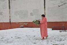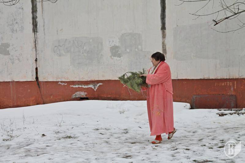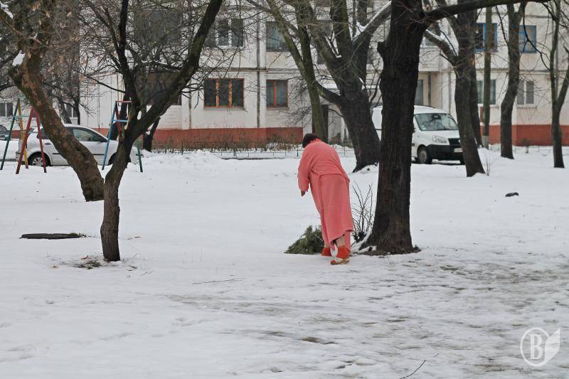 …Через 15 хвилин після цього , немолода жінка. Двірничка, в обов’язки якої не входить підбирати за кожним ялинки і недопалки, в потягла сосну на майданчик, звідки їх (ялинки) забере трактор ЖЕК-10. Не буде ж трактор за кожною ялинкою ганятися.